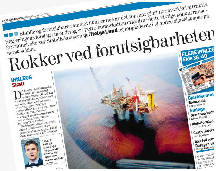 "Kronikken i Dagens Næringsliv fra en rekke oljeselskaper på norsk sokkel, viser at den videre utviklingen på norsk sokkel kan bli rammet av regjeringens forslag til skatteskjerpelse", sier Petoros administrerende direktør, Kjell Pedersen.